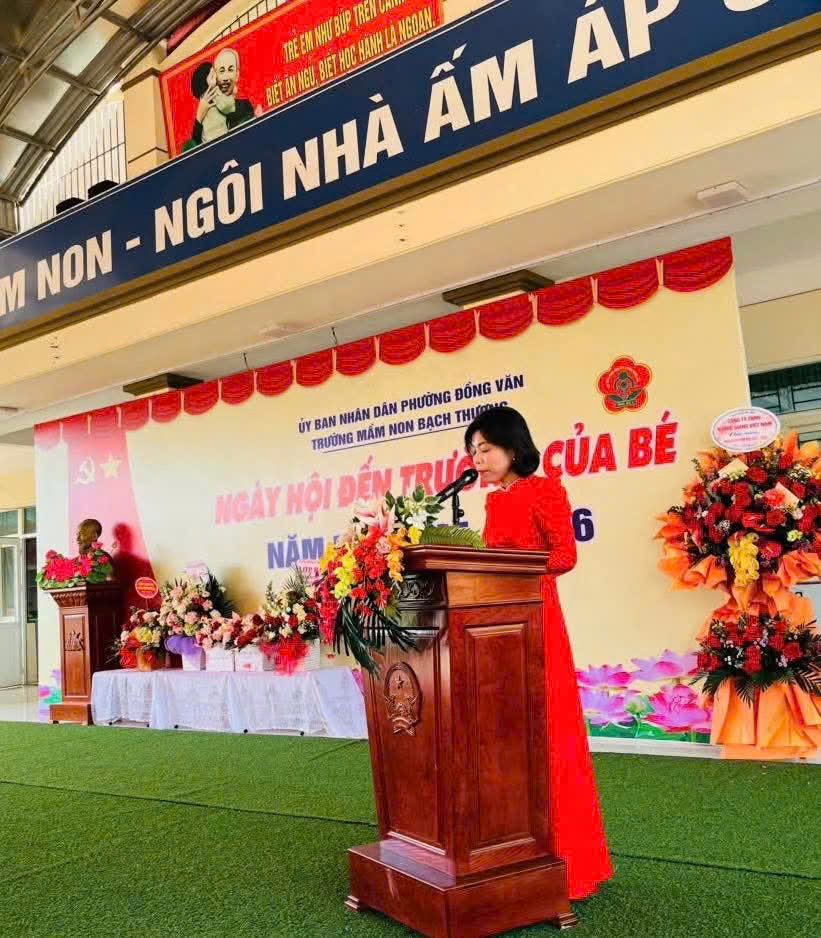 Buổi lễ diễn ra trong không khí ấm áp, tràn đầy niềm vui của các cô giáo và các bé học sinh. Đặc biệt, nhà trường vinh dự được đón tiếp sự hiện diện của các đồng chí lãnh đạo địa phương, đại diện các cơ quan, doanh nghiệp, Ban đại diện cha mẹ học sinh cùng toàn thể cán bộ, giáo viên, nhân viên và các bậc phụ huynh